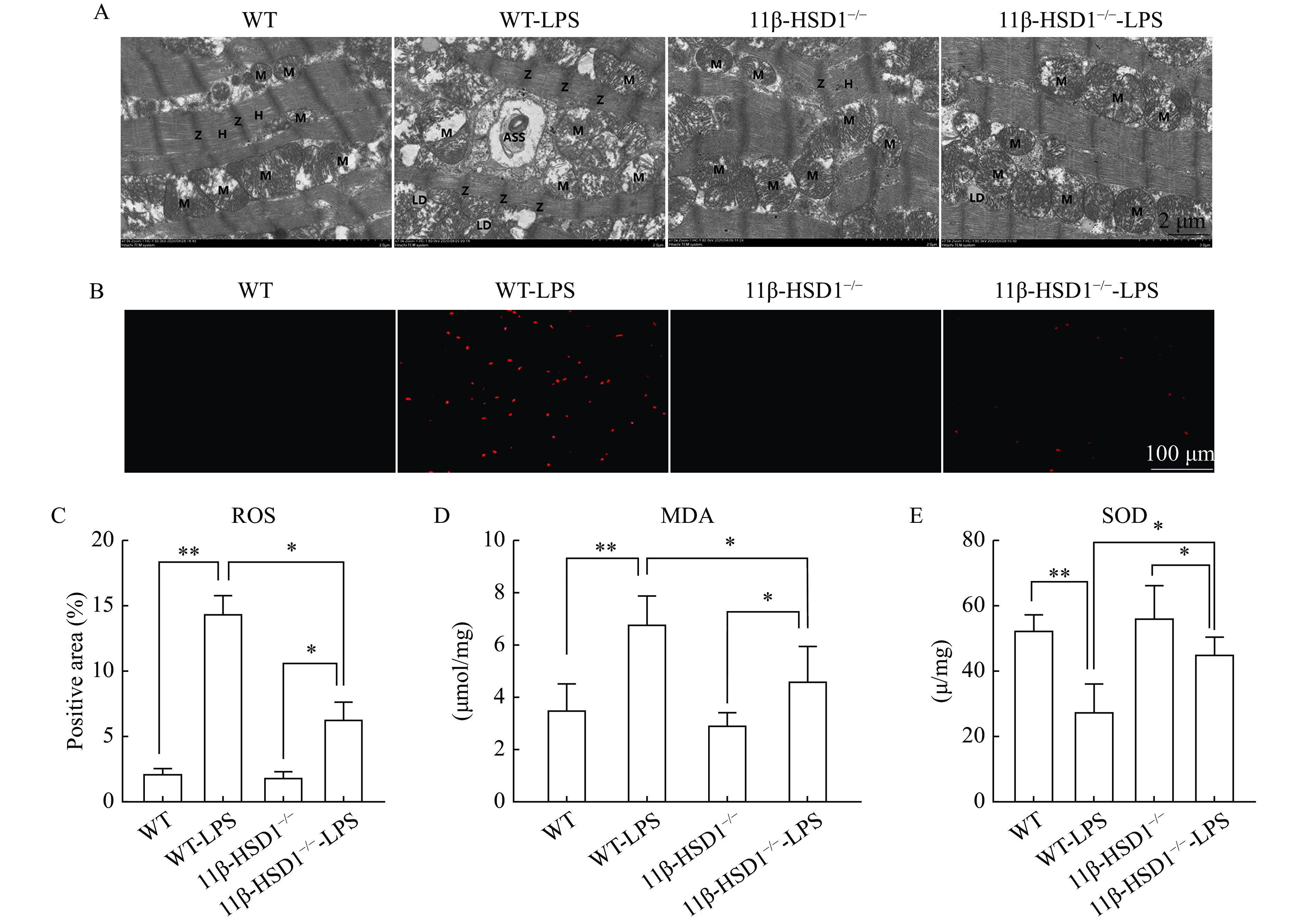 Sepsis-induced myocardial dysfunction is primarily accompanied by severe sepsis, which is associated with high morbidity and mortality. 11β-hydroxysteroid dehydrogenase type 1 (11β-HSD1), encoded by Hsd11b1, is a reductase that can convert inactive cortisone into metabolically active cortisol, but the role of 11β-HSD1 in sepsis-induced myocardial dysfunction remains poorly understood. The current study aimed to investigate the effects of 11β-HSD1 on a lipopolysaccharide (LPS)-induced mouse model, in which LPS (10 mg/kg) was administered to wild-type C57BL/6J mice and 11β-HSD1 global knockout mice. We asscessed cardiac function by echocardiography, performed transmission electron microscopy and immunohistochemical staining to analyze myocardial mitochondrial injury and histological changes, and determined the levels of reactive oxygen species and biomarkers of oxidative stress. We also employed polymerase chain reaction analysis, Western blotting, and immunofluorescent staining to determine the expression of related genes and proteins. To investigate the role of 11β-HSD1 in sepsis-induced myocardial dysfunction, we used LPS to induce lentivirus-infected neonatal rat ventricular cardiomyocytes. We found that knockdown of 11β-HSD1 alleviated LPS-induced myocardial mitochondrial injury, oxidative stress, and inflammation, along with an improved myocardial function; furthermore, the depletion of 11β-HSD1 promoted the phosphorylation of adenosine 5′-monophosphate-activated protein kinase (AMPK), peroxisome proliferator-activated receptor gamma coactivator 1α (PGC-1α), and silent information regulator 1 (SIRT1) protein levels both in vivo and in vitro. Therefore, the suppression of 11β-HSD1 may be a viable strategy to improve cardiac function against endotoxemia challenges.