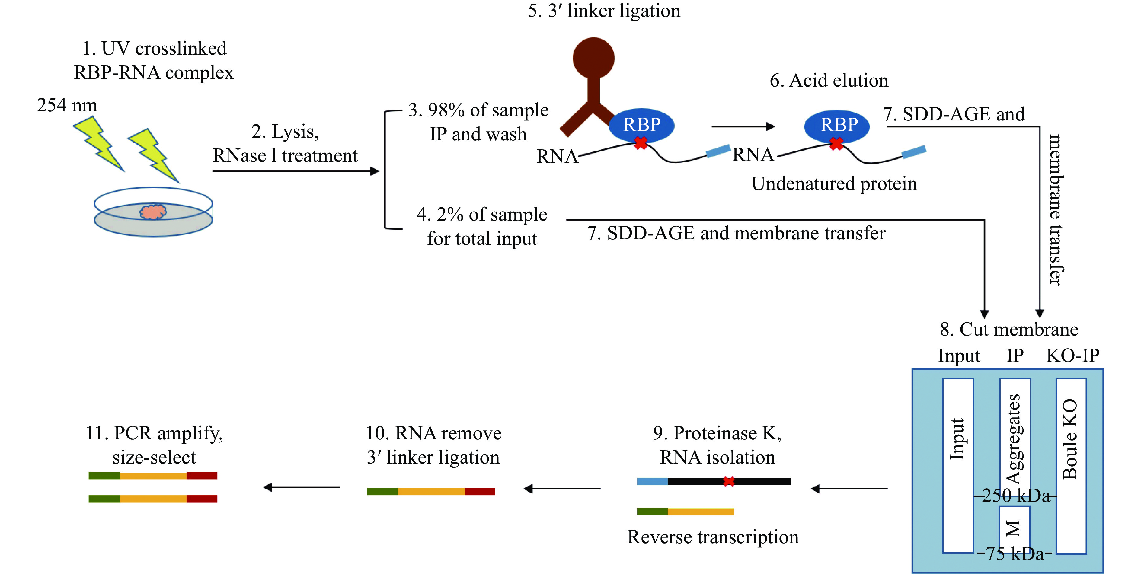• Amyloids have traditionally been considered pathologic protein aggregates which contribute to neurodegeneration. New evidence however increasingly suggests that non-pathological amyloids are formed in animals during normal development. Amyloid-like aggregate formation was originally thought to be a conserved feature of animal gametogenesis. This hypothesis was based on findings which suggest that regulated amyloid formations govern yeast meiosis by way of meiosis-specific RNA binding proteins. Additional support came from studies which demonstrate that DAZL, a mammalian gametogenesis-specific RNA binding protein, also forms SDS-resistant aggregates in vivo. Here, we report evidence of aggregated BOULE formations, another DAZ family protein, during sperm development. Data suggest that in mouse testis, BOULE forms SDS-resistant amyloid-like aggregates. BOULE aggregate formation correlates with dynamic developmental expression during spermatogenesis but disappeared in Boule knockout testis. We also mapped essential small region in vitro BOULE aggregations, immediately downstream DAZ repeats, and found that aggregations positively correlated with temperature. We also performed enhanced UV cross-linking immunoprecipitation on BOULE aggregates from mouse testes and found that aggregates bind with a large number of spermatogenesis-related mRNAs. These findings provide insight into the amyloidogenic properties of gametogenesis-specific RNA binding proteins as a conserved feature in mammalian reproduction. Further investigation is warranted to understand the functional significance of BOULE amyloid-like formation during mouse spermatogenesis.
